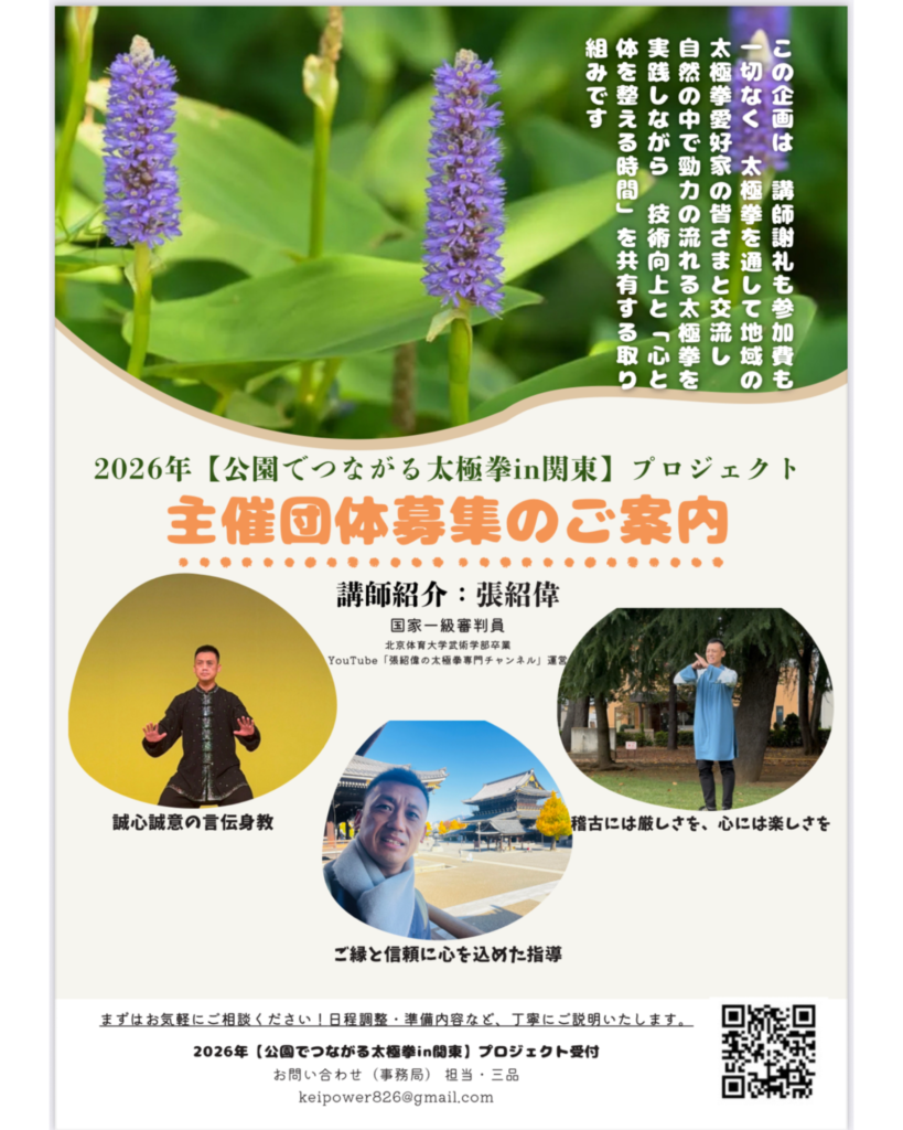 今年は、「地方太極拳応援プロジェクト」や「公園でつながる太極拳」などの取り組みを通じて、太極拳が人と人をつなぎ、地域や社会の中で役割を果たしていく可能性を皆さんと共に実感する一年でもありました。